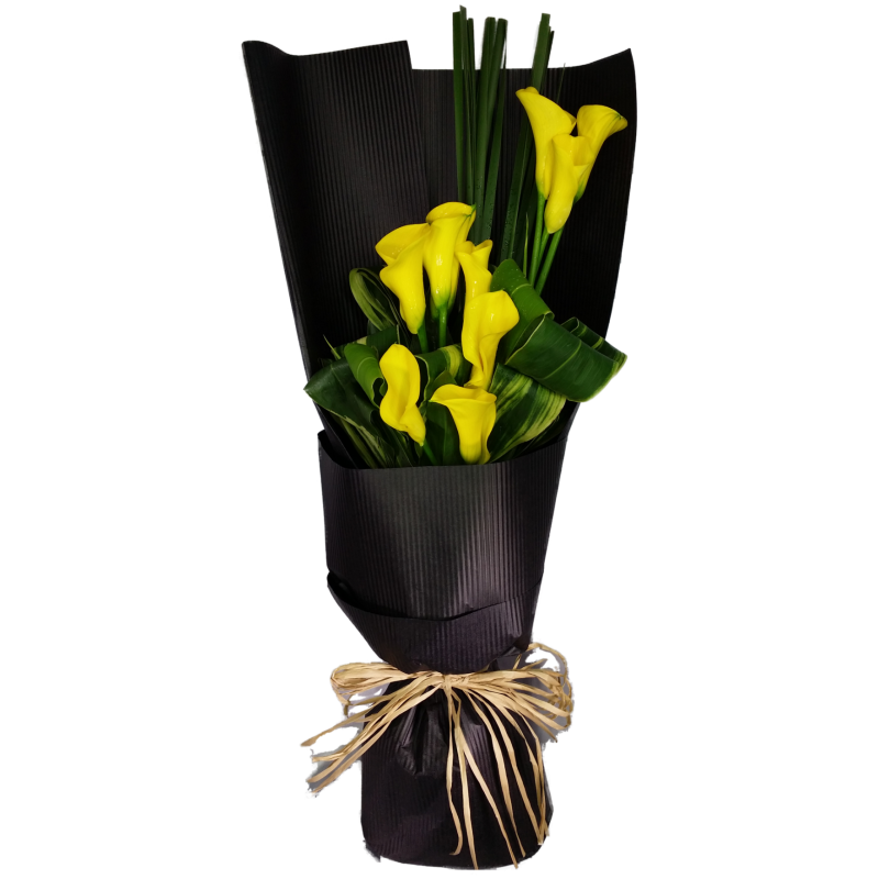 A Special France Style Bouquet with 10pcs Cally Lily from New Zealand beautifully wrapped in a Dark Color paper